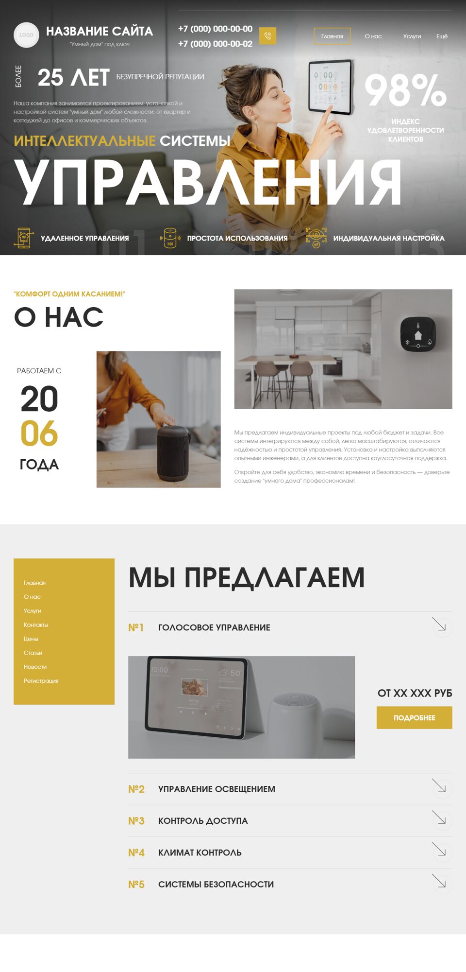 Выберите понравившийся дизайн, мы разместим в нём ваши фирменные элементы и цвета. После оплаты дизайн будет снят с продажи, он продается только один раз! Управлять сайтом проще простого, текстовое наполнение и картинки можно легко изменить в системе управления сайтом.