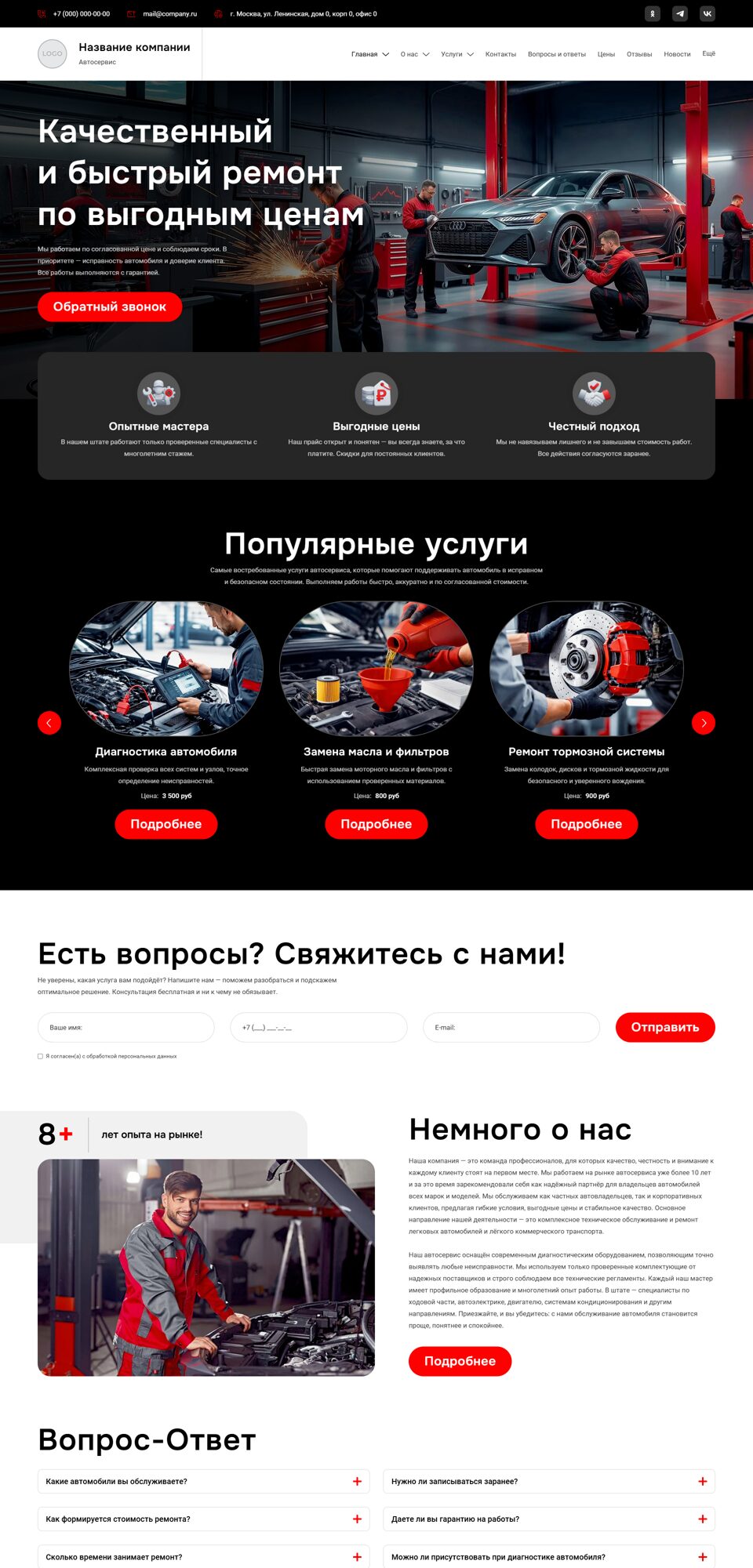 Готовый сайт 'Автосервисы, ремонт транспортных средств' № 105025